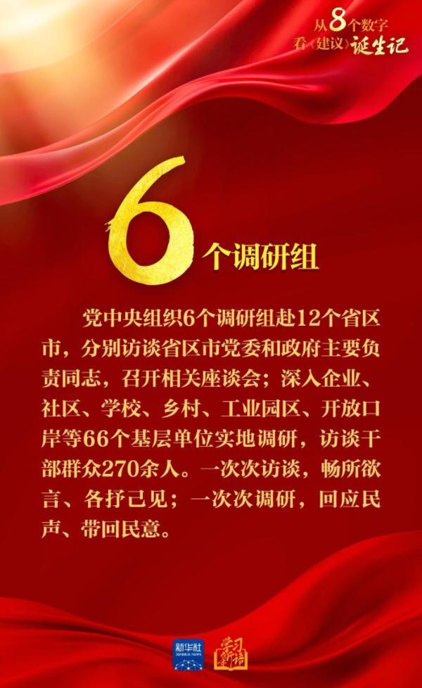 今天,新华社播发通讯《为基本实现社会主义现代化奠定更加坚实的基础——〈中共中央关于制定国民经济和社会发展第十五个五年规划的建议 〉诞生记》。通过一组数字,一起来看这份纲领性文件是如何诞生的。
